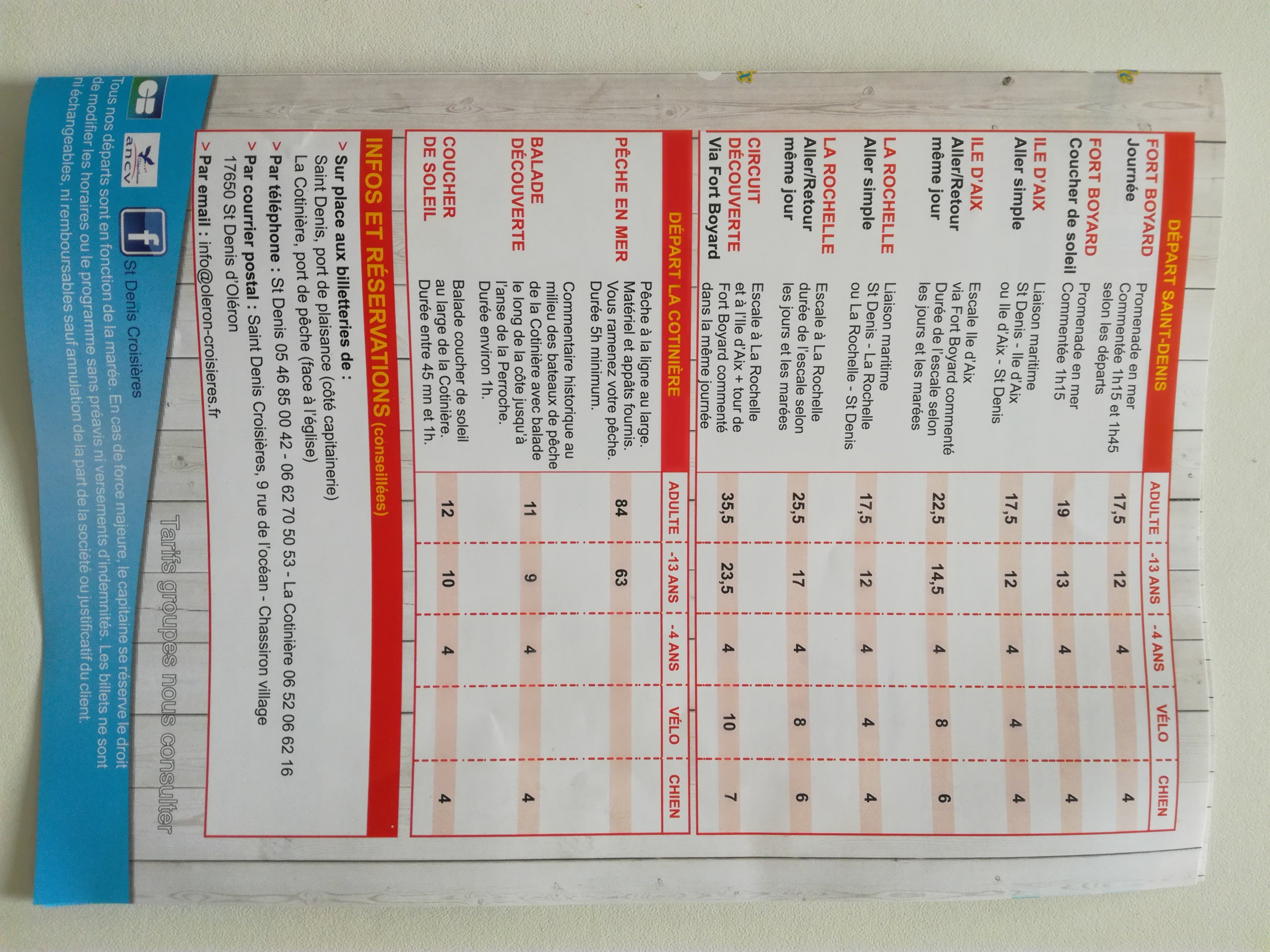 Posté le 14/12/2017 à 18:22"Belles balades à des prix raisonnables. Dommage qu'ils ne font plus la liaison avec la Rochelle en dehors de juillet et août."